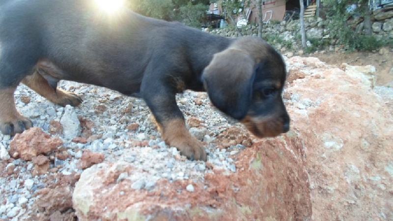 Sympa bon tempérament de teckel robe la plus claire de la portée Testé au parc sur sanglier ,n'a aucune crainte passionné , persistant à la poursuite ,sur leurre incroyable ténacité et ne lâche pas prise surl'odeur JOBBY est parti pour être un super chien!
